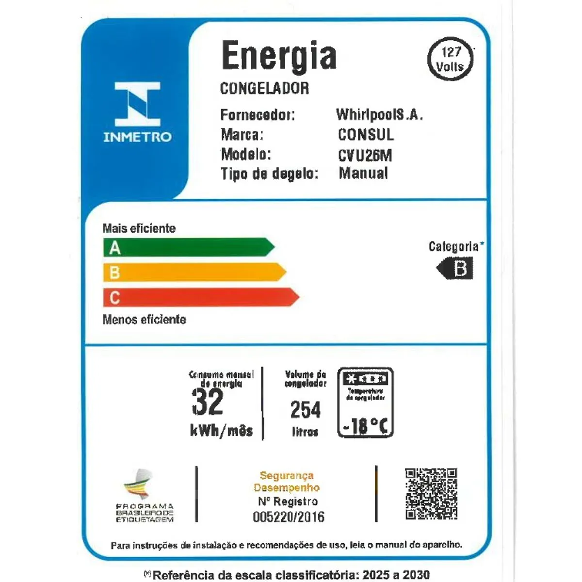 | Consumo Aproximado de Energia | 37 Kwh/mês |
