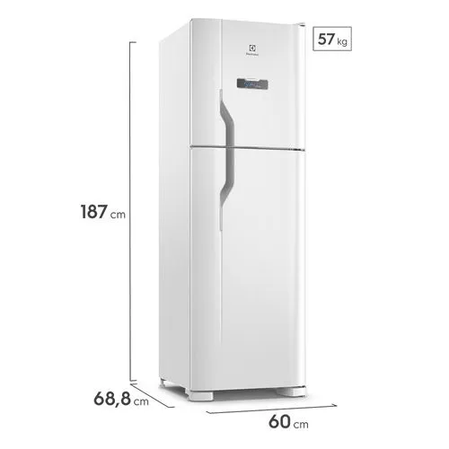 A Geladeira/Refrigerador Top Freezer Duplex DFN44 Electrolux oferece versatilidade e inovação, com painel para controle de temperatura, e maior freezer da categoria. O Painel de Controle facilita a interação com o refrigerador. Agora, você pode controlar a temperatura sem abrir a porta, em um simples toque. Além disso, a função de bloqueio do painel garante que as configurações escolhidas não sejam alteradas, evitando qualquer inconveniente ou desperdício de alimentos. Com o Turbo Freezer e a Prateleira Reversível, você garante potência máxima para congelar rapidamente, mantendo a qualidade dos itens de diversos tamanhos. O mesmo acontece com a função Drink Express, que resfria suas bebidas de maneira mais rápida. Com 400 litros de capacidade líquida total, oferecendo uma ampla capacidade de armazenamento. Projetado para acomodar alimentos, bebidas e embalagens com facilidade, ele garante que você tenha espaço de sobra para manter tudo organizado e de fácil acesso. Além de ser, Frost Free, sem necessidade de descongelamento, Luz LED, que garante melhor visualização dentro da geladeira e prateleira dobrável e retrátil no congelador, sendo ajustável para armazenar alimentos de diferentes tamanhos. Produzida em aço na branca, ela vai deixar a sua cozinha mais bonita e elegante.
